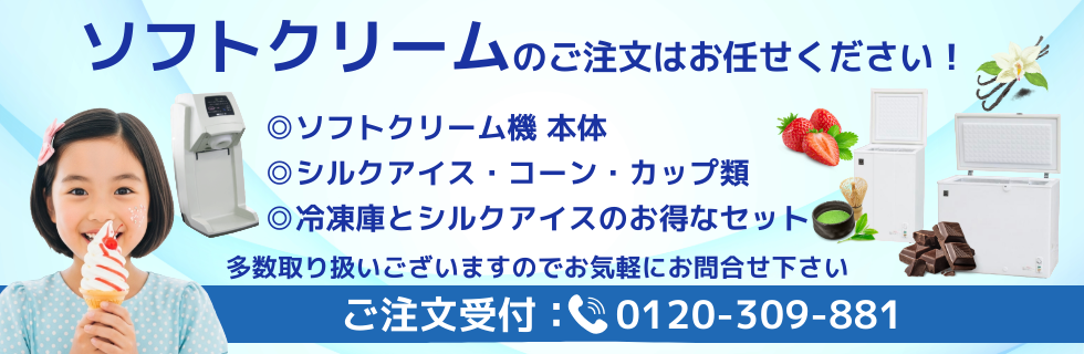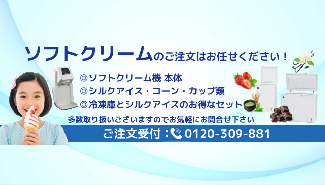 長時間保管ができる冷凍庫とソフトクリーム機専用のパックアイスのお得なセット